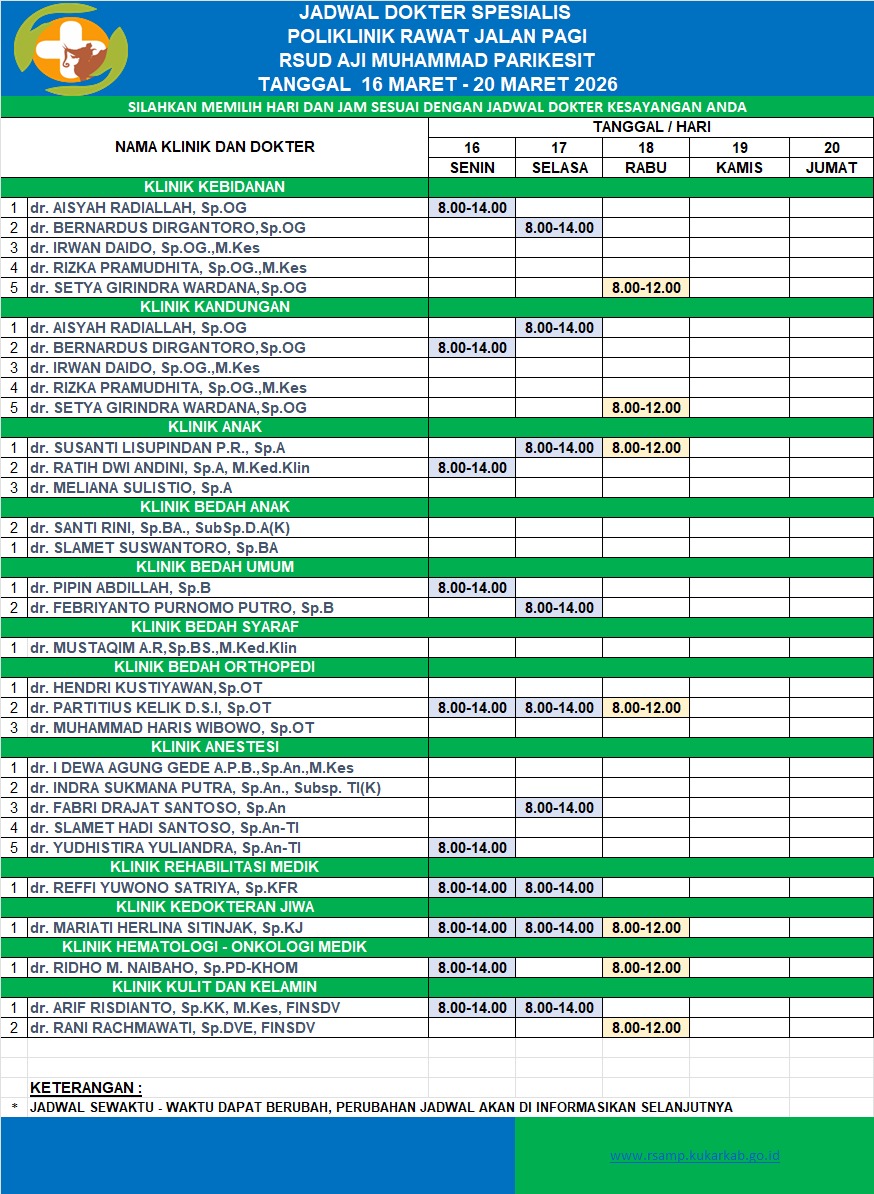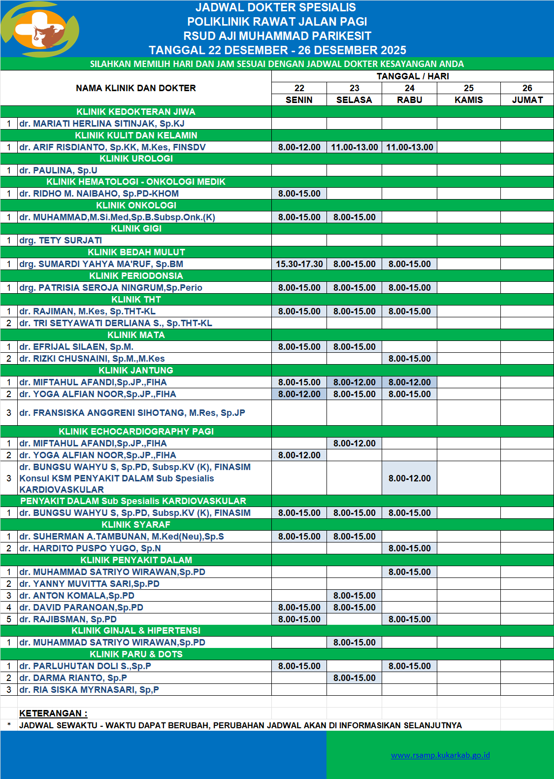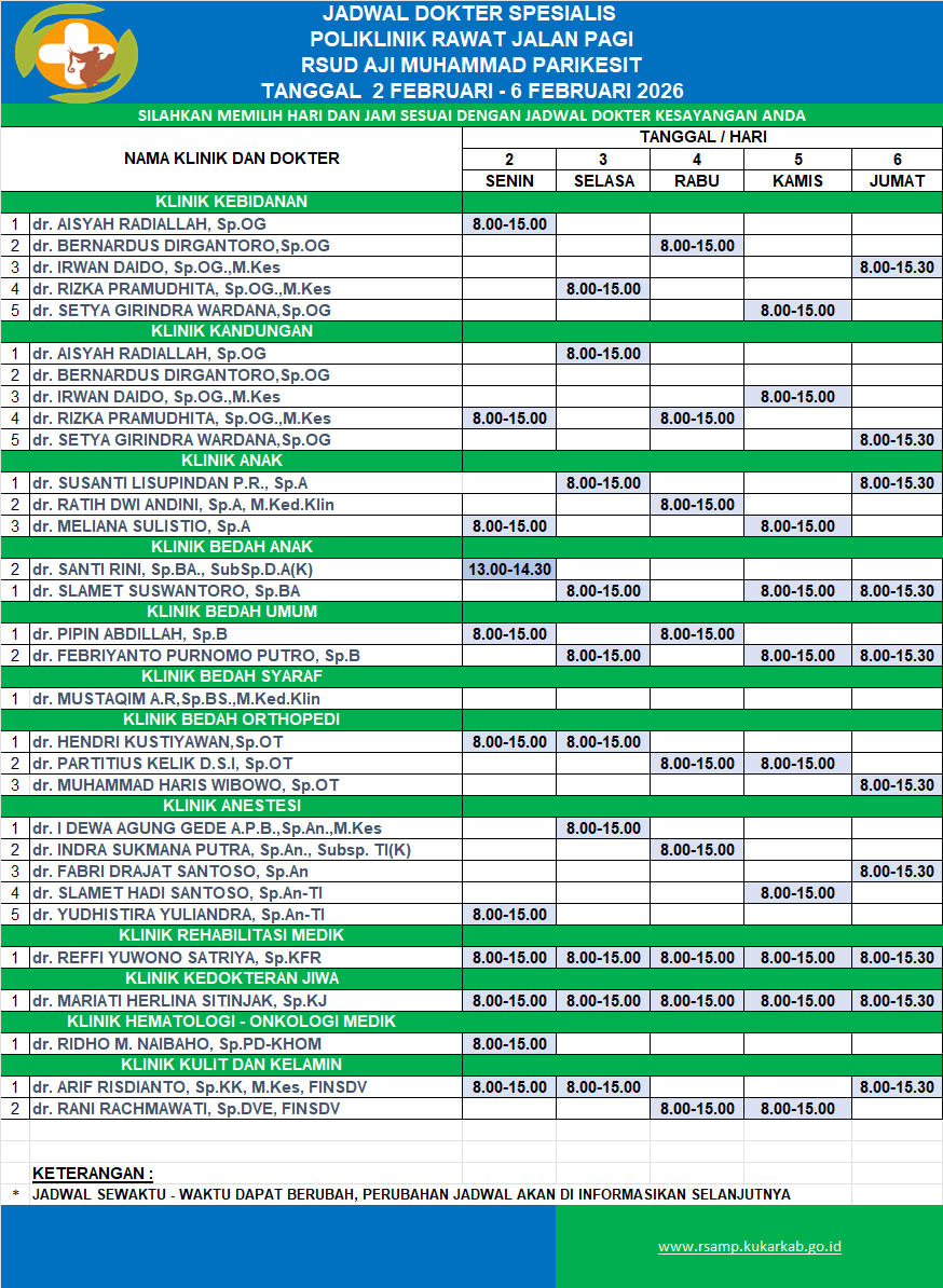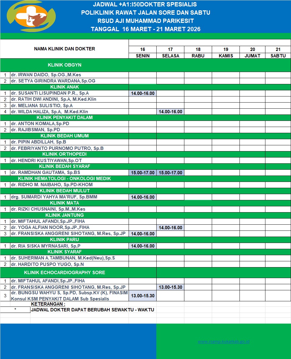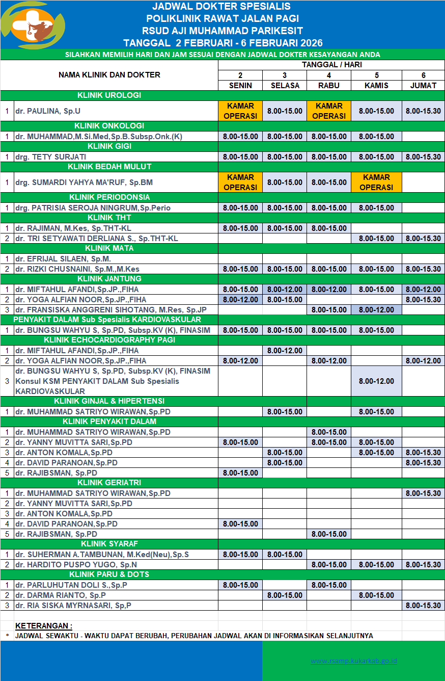 Jadwal Praktek Dokter Rumah Sakit Aji Muhammad Parikesit Tenggarong, Kutai Kartanegara